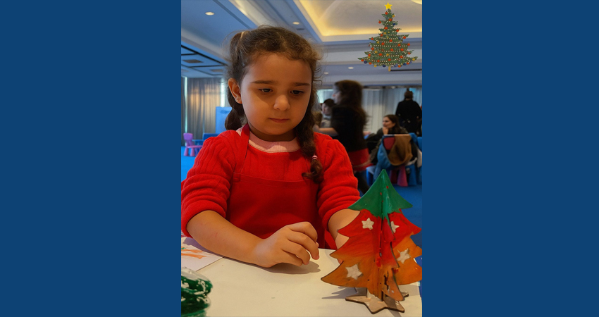 Katılımcılar bu atölyede minik eller, ahşap çam ağaçlarını boyayarak ve süsleyerek hayal güçlerini yansıtıyor. Renkli boyalar, parlak simler ve eğlenceli süslemelerle kendi yılbaşı ağacını tasarlamak çocuklar için hem yaratıcı hem de keyifli bir deneyime dönüşüyor!