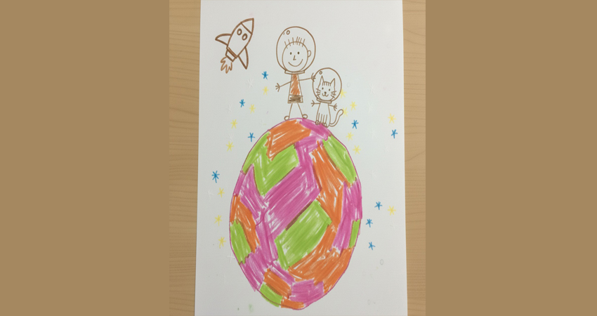Kartondan kesilen gezegen şekli boyanıp pamuk, kâğıt ve diğer malzemelerle süslenir. Çocuklar kendi dünyalarını oluşturarak hayal gücünü ifade eder.