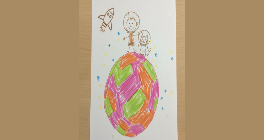 Kartondan kesilen gezegen şekli boyanıp pamuk, kâğıt ve diğer malzemelerle süslenir. Çocuklar kendi dünyalarını oluşturarak hayal gücünü ifade eder.