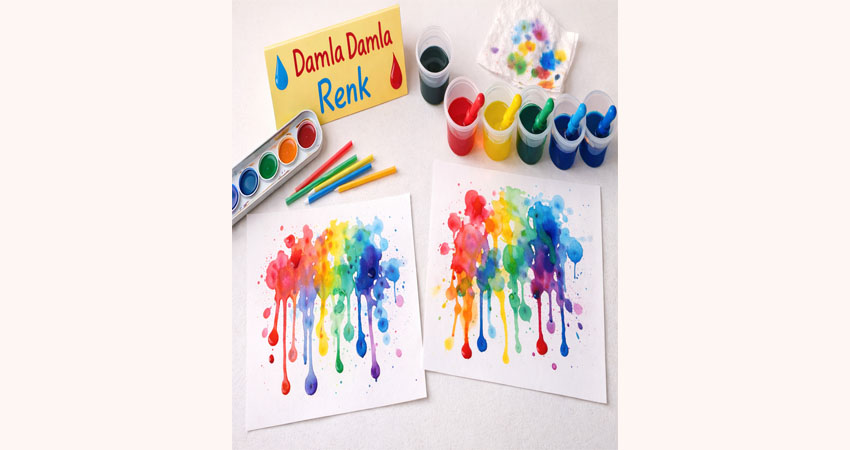 Boya damlatma ve sünger baskı teknikleriyle kâğıt üzerinde akan, yayılan görüntüler oluşturulur. Çocuklar renklerin karışmasını izlerken neden–sonuç ilişkisini deneyimler. Tekrarlı hareketler sakinleştirici bir etki yaratır