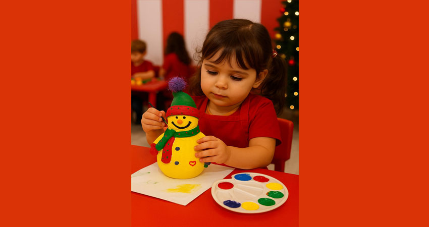 Bu atölyede çocuklar, özel olarak hazırlanmış kardan adam biblolarını diledikleri renklerle boyayarak kendi tasarımlarını oluşturur. Fırça ve boya kullanımıyla gerçekleştirilen çalışma, çocukların el becerilerini ve yaratıcılıklarını destekler. Atölye sonunda her çocuk, kendi boyadığı kardan adam bibloyu hatıra olarak yanında götürür.