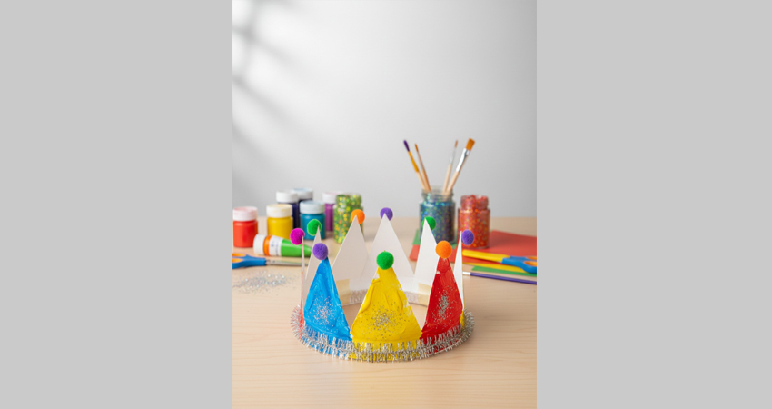 Karton taçlar çeşitli süsleme malzemeleriyle kişiselleştirilir. Çocuklar hayal ettikleri karaktere göre tacını tasarlar. Yaratıcılık, kendini ifade etme ve ince motor gelişimine katkı sağlayan eğlenceli bir çalışmadır.
