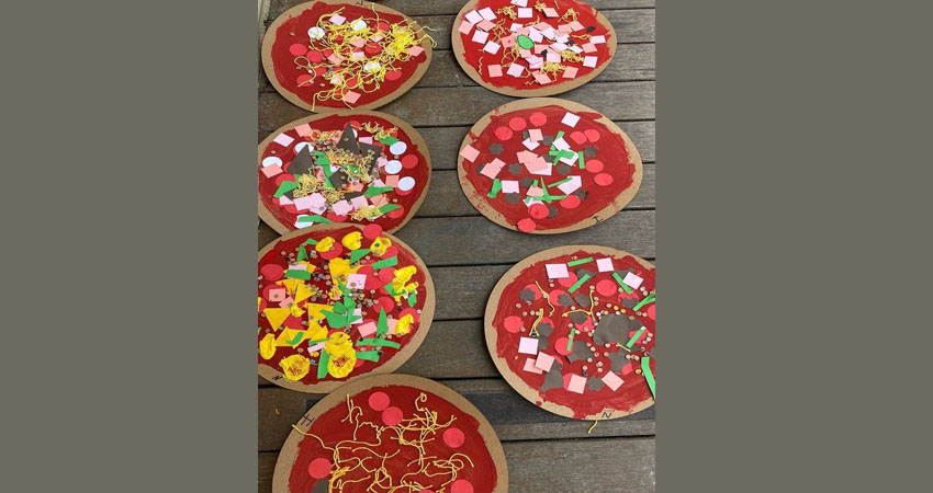 Kendi pizzanı kendin tasarla! Çocuklar karton tabak üzerine renkli kâğıtlarla pizza malzemeleri oluşturur ve kendi pizzalarını hazırlar. Eğlenceli, yaratıcı ve iştah açıcı bir atölye!