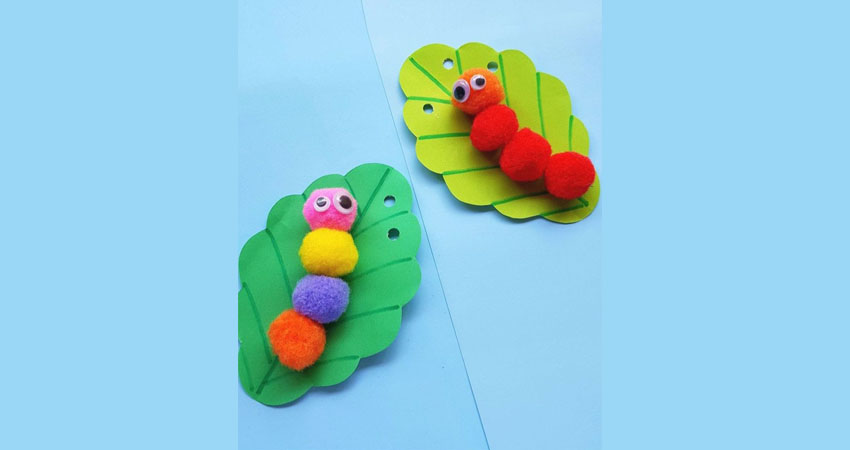 Yuvarlaklar birleşiyor, sevimli bir tırtıl ortaya çıkıyor! Ponponlar ve yapıştırıcıyla yapılan bu atölye, minik parmakları çalıştırırken yüzleri de güldürüyor.