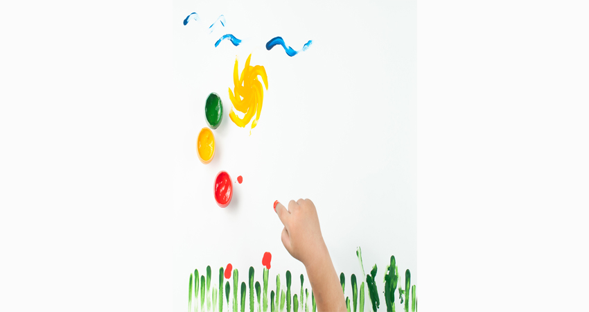Çocuklar parmak izleriyle rengârenk çiçekler yapıyor. Minik dokunuşlarla ortaya çıkan bahçede hayal güçleri ve renkler bir araya geliyor.