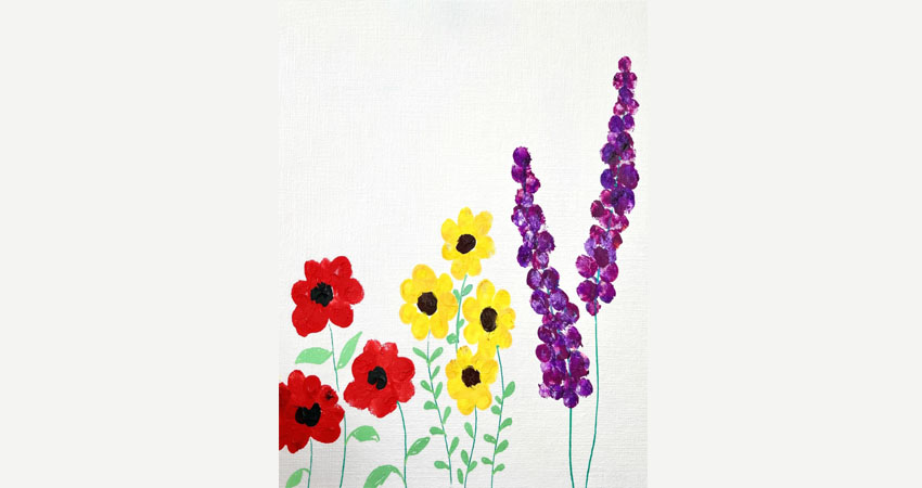 Parmaklar boyaya giriyor, bahar kâğıtta açıyor. El izleriyle çiçekler ve renkli bahar sahneleri oluşturuluyor. İz bırakmanın keyfi ön planda.