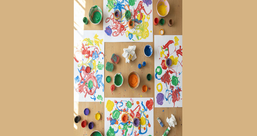 Çocuklar parmakları, süngerler ve yuvarlak objelerle büyük kâğıtlar üzerinde izler bırakır. Amaç ortaya “doğru” bir resim çıkarmak değil, renkleri dokunarak tanımak ve hareket ettikçe iz oluştuğunu keşfetmektir. Süreç serbesttir, çocuk istediği kadar tekrar eder ve yaptığı her iz kendi deneyiminin bir parçası olur.