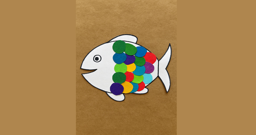 Minikler balık resimlerini renkli kâğıt pullarla süslüyor. Bu keyifli atölyede hem renkleri tanıyor hem de kendi balıklarını eğlenceli şekilde tasarlıyor.