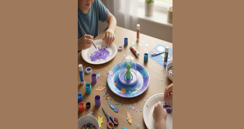 Bir tabak, biraz renk ve hayal gücüyle uzaydayız! Çocuklar kendi UFO’larını tasarlıyor, içine sevimli uzaylılarını yerleştiriyor. Boyama, süsleme ve yapıştırma ile tamamlanan bu atölyede uzay macerası başlıyor.