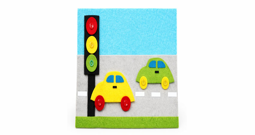Kıvrımlı yollar, yuvarlak duraklar… Keçe ve yumuşak parçalarla yapılan bu çalışmada çocuklar dokunarak keşfediyor. Duyusal ve sakin bir deneyim.